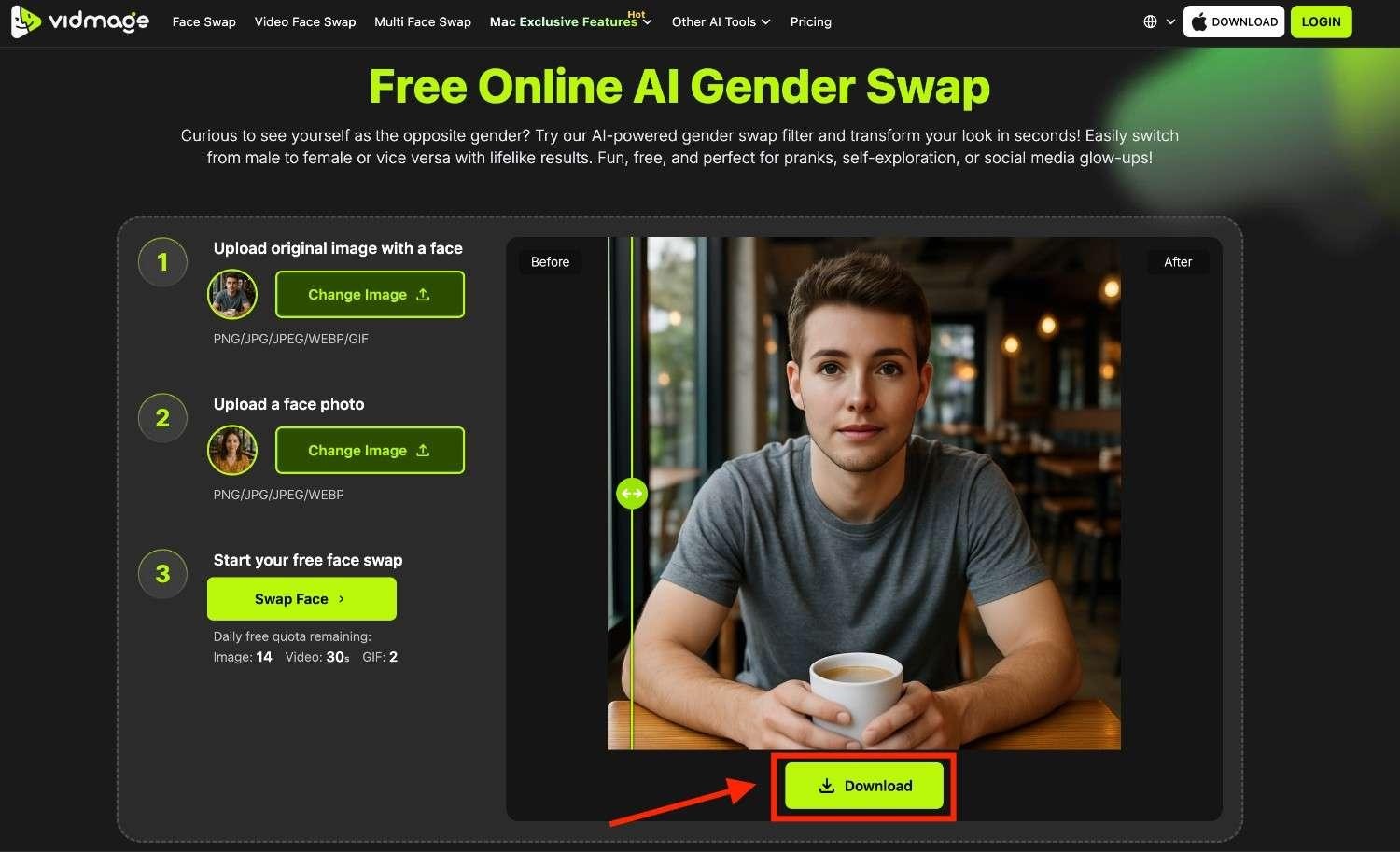 I didn't quite expect the gender swaps to be this fun. Some results made me laugh, while others looked so real that I had to look twice. The AI gender swap tools make it easy to change a person's gender from male to female or vice versa in a photo or video. After testing multiple tools, VidMage stood out to me for its clean and intuitive interface. It's simple to use and takes only a few seconds to generate realistic outputs. I’d say you must try VidMage's gender swap feature and see what it's like to be the opposite gender!