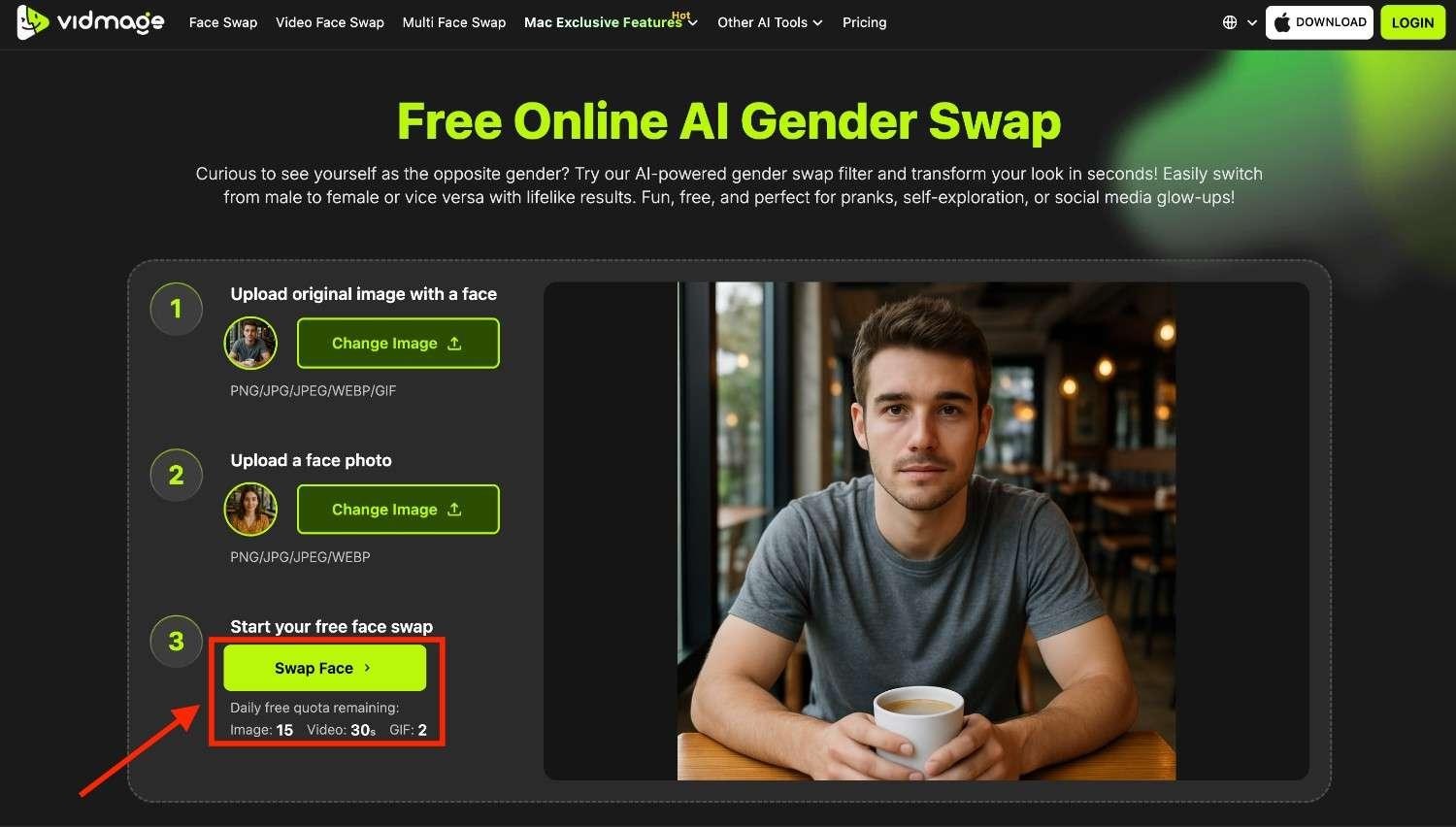 While some apps, such as Reface, Remaker AI, and Akool, did what they claimed, the outputs sometimes featured weird glitches and blurry overlays. On the other hand, VidMage surprised me with smooth and realistic gender swap results for free. If you're looking to try VidMage's gender face swap, I'll share the step-by-step guide, along with what worked for me and a few quick tips to get amazing results.